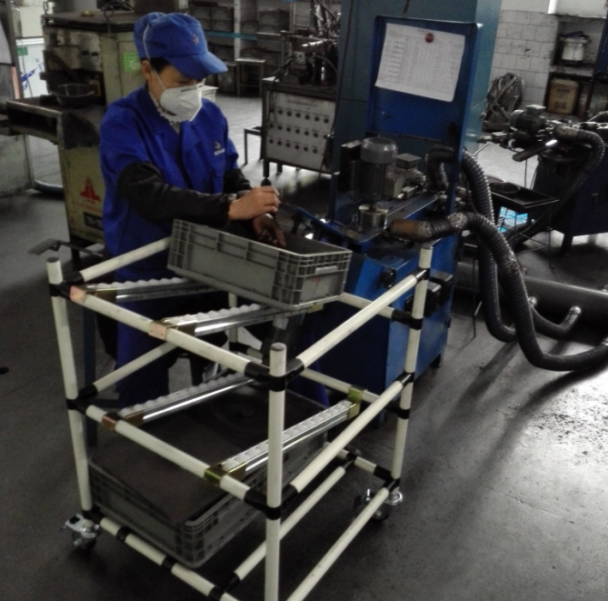 另外,對(duì)打磨車(chē)間每臺(tái)打磨機(jī)配備一個(gè)產(chǎn)品箱堆放架子,把產(chǎn)品箱堆放在架子上,這樣,打磨車(chē)間看起來(lái)更加整齊、整潔。